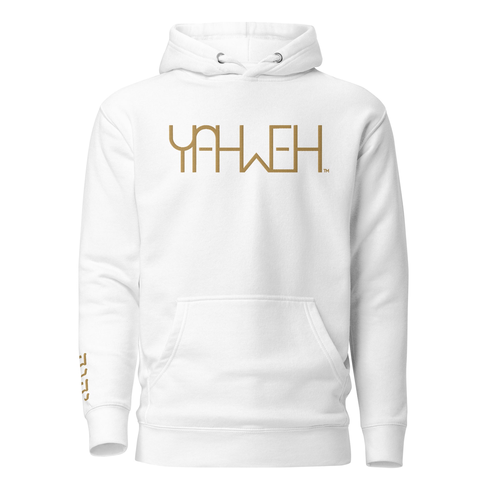 Step into timeless reverence with the Yahweh™ White Embroidered Hoodie. Minimalist in design yet rich in meaning, this piece carries Yahweh (יהוה) embroidered across the chest as a pure and understated declaration of faith. On the wrist, the sacred name is embroidered in gold Hebrew script, a detail that shines with significance and draws attention to the eternal truth: His Name is power.